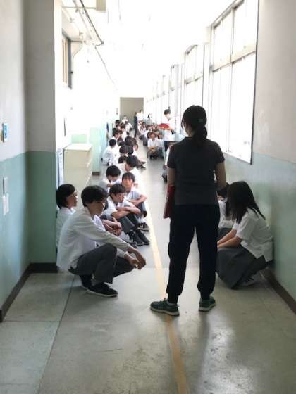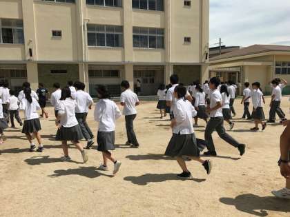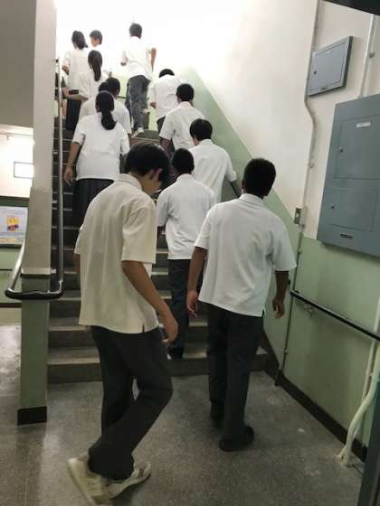 運動場は走り、校舎内は整然と歩き、3・4階の廊下で安全を守ります。