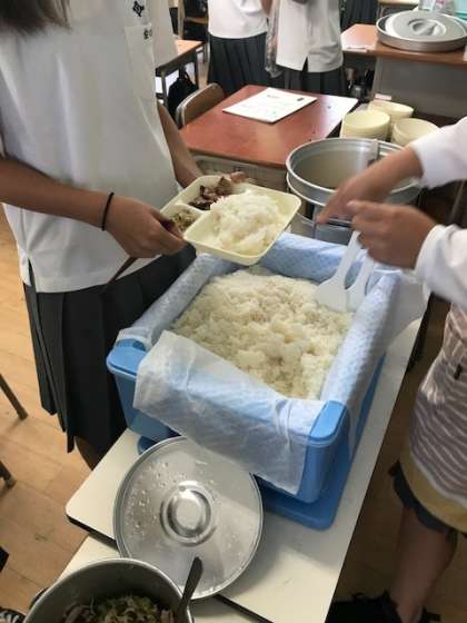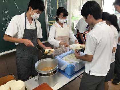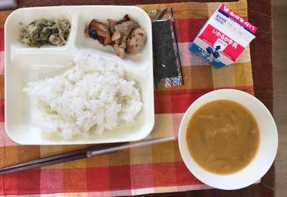 今日ンメニューは「鶏肉の照り焼き・味噌汁・野菜炒め・焼き海苔・ご飯・牛乳」の6品です。