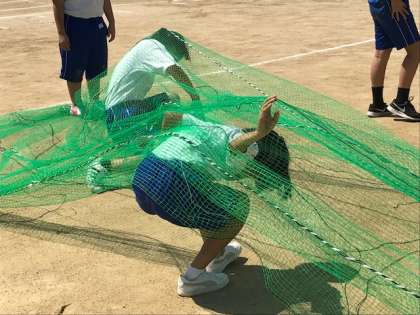 写真下:バラエティ走のネットくぐりです。