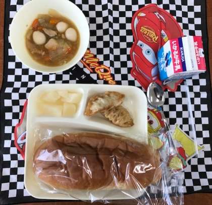 写真下:「牛乳」が加わって今日の5品がそろいました。
