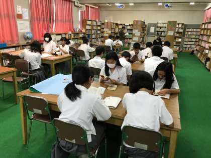 2年生、図書室で読書をしています。