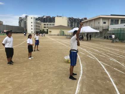 9/18 体育大会予行 スターターと決勝審判係
