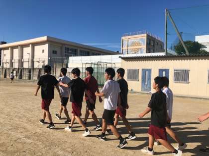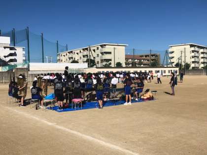 放課後に体育大会の部活動行進の練習を行いました。