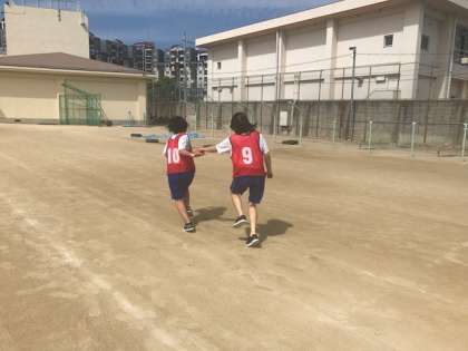 4時間目に学年種目「全員リレー」の練習をしました。