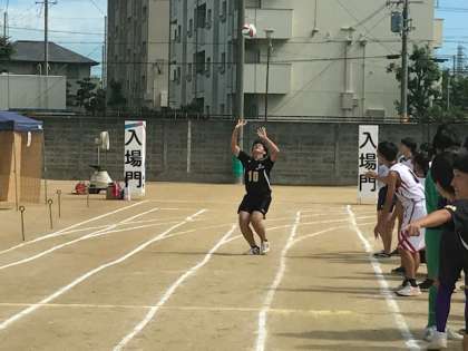 写真下 男子バレー部がトスを上げながらゴールしました。