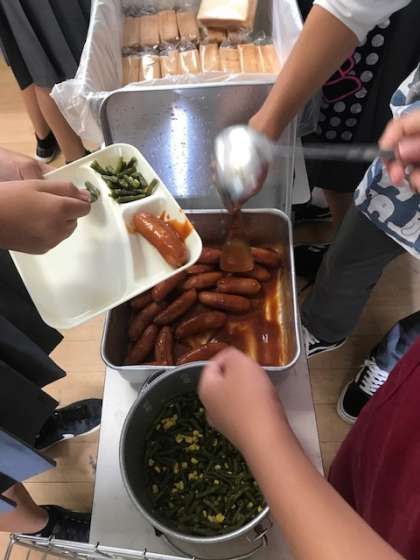 今日のメニューは「フランクフルトのケチャップソース・スープ・さんどまめとコーンのサラダ・食パン(マーマレードを添えて)・牛乳」の5品です。
