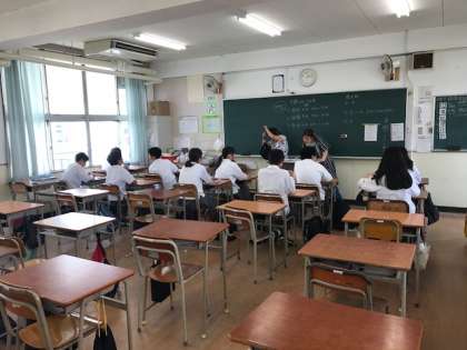 英語の先生だけでは手が回らないので、学力向上ボランティアさんに手伝っていただきました。