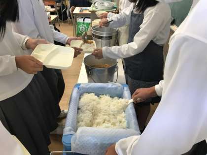 写真上:配膳風景。