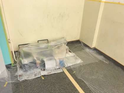 ペンキバケツの中にローラー、ビニール手袋、刷毛(はけ)、人数分のビニール手袋を入れたリボーンペンキ塗りセットを班の数だけ作りました。