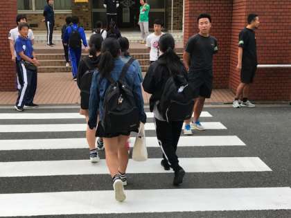 朝から色とりどりの服装でみんな登校しています。