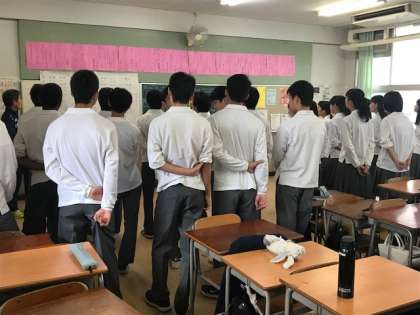 2年の集会取材を終え職員室に戻ると上から歌声が聞こえてきました。