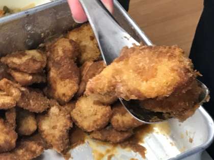 写真右 おかわりの8個のみそカツ争奪戦に名乗りをあげる少年。
