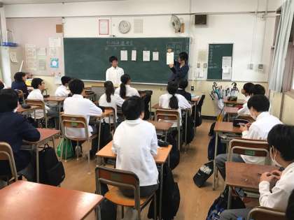 作ったリーフレットの特徴や注目してほしい点、工夫した点などを代表者が説明しています。