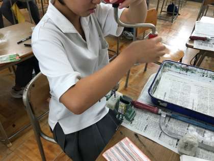 ドリル、鋸(のこぎり)、鑢(やすり)など使っていきます。