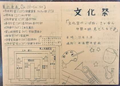 1年文化祭リーフレット選考会を勝ち抜いた作品が本当にリーフレットになりました。