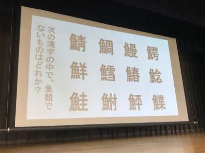 写真上 画面に映っている漢字のうち、魚類でない漢字はどれでしょう?