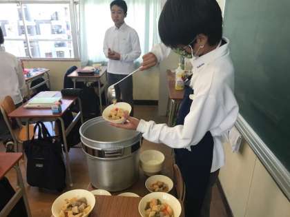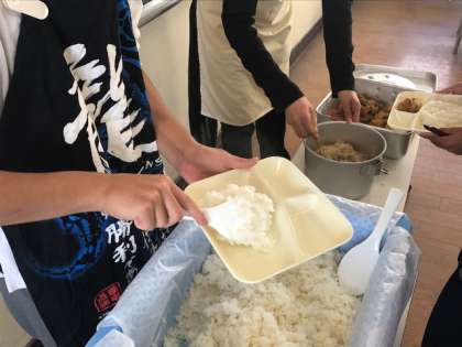 ご飯をよそう手つき、含め煮をおわんによそうお玉の角度、絶妙です。