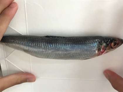 写真中 生鰯の尾頭付きです。けっこう大きいサイズのいい鰯です。