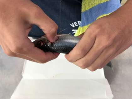 写真下 頭を取ります。キャーとかワァ—とか「先生、助けて!!」とかいう声が飛び交っています。