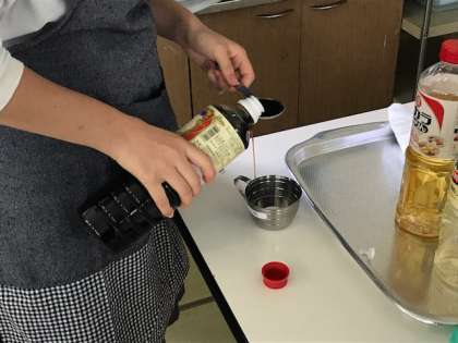 写真上 焼いている間に蒲焼きのタレを作ります。