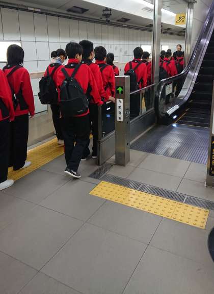 写真下 新森古市駅に着きました。乗車マナーもお行儀も良かったです。