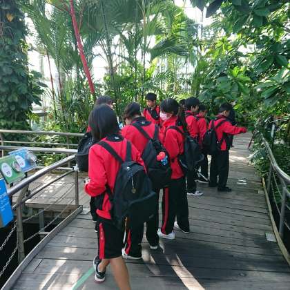 奥に見えるのが「咲くやこの花館」です