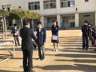 3年1組と2年3組の学級代表に賞状が渡されました。