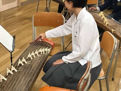 浴衣、盆踊り、ペンキ塗り、筝といろんな体験のできる井高野中学校です。