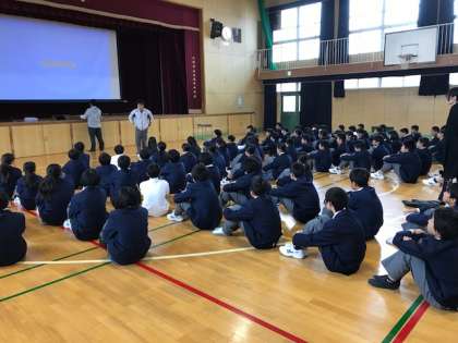 明日水曜日がテストなので、予定を変更して1年が集会を開きました。
