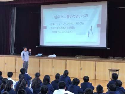 「公正なテストの受け方」についてパワーポイントを使っての説明がありました。
