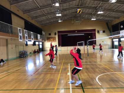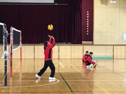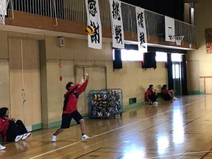 真上に上げられるといいのですが、斜めに上がったときは素早くボールの落下地点にはいりましょう。