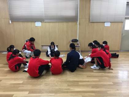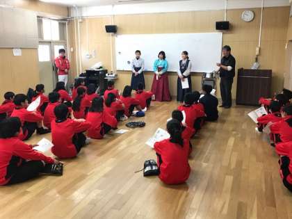 3人の講師の先生に来ていただき、班に分かれてお話を聞き、体験に入りました。