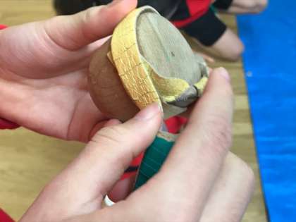 回ったらそのベルトでペシペシしてさらに加速させます。