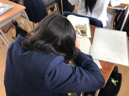 教材は「山寺のびわの実」、長いお話でしたが、しっかり学習していました。