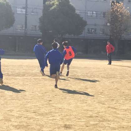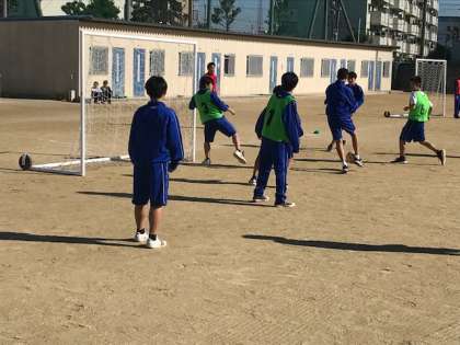 人数を少なめにして小さいコート・小さいゴールで試合をしています。