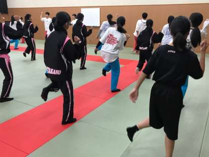 大阪高校の新体育館の杮(こけら)落としで流すプロモーションビデオ作成のために大阪高校ダンス部の皆さんがダンスを教えに来てくださいました。