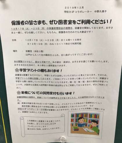 保護者の皆様へのお知らせ 「図書室をご利用ください」