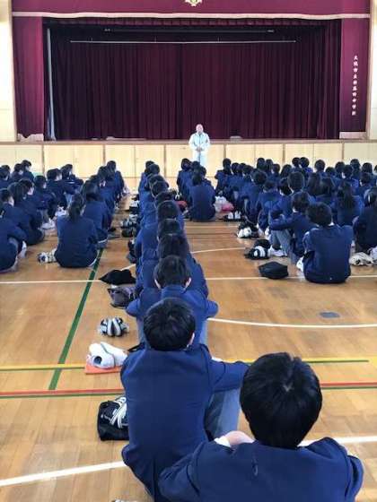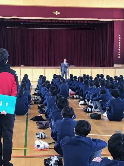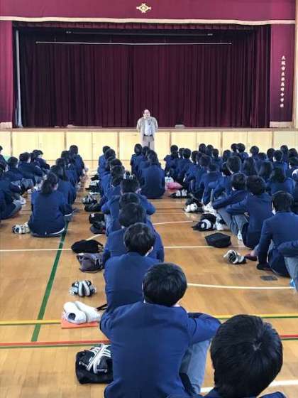 校長先生からの阪神淡路大震災があった日の体験談の後、各地域の防災リーダーの方たちから、阪神淡路大震災の体験談や南海トラフ地震が起こった場合の井高野地域の想定される被害や、避難しなければならない状況になった時の注意してもらいたいこと、震災等の災害が起きた時に中学生に協力してもらいたいこと等の話がありました。