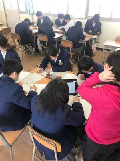 今までに調べた資料やタブレット等を活用し、班で防災に関する壁新聞の作成に取り組みました。