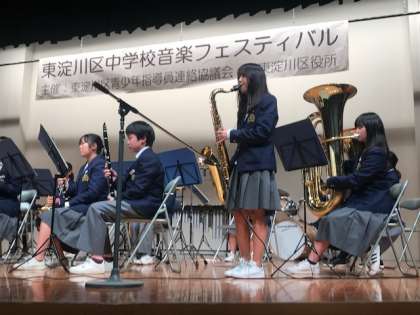 26日(日)の午後、大阪経済大学70周年記念館フレアホールで「第12回 東淀川区中学校 音楽フェスティバル(主催:東淀川区青少年指導員連絡協議会)」が開催され、本校 吹奏楽部も出演しました。