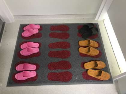 マットに足形が書いてあるので、履物をそろえやすいです。