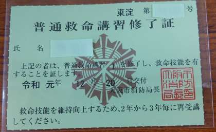冬休み前に後期保健委員対象に救急救命講習を行いましたところ、その修了証が届いたので、伝達しました。