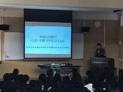本日の6限目は、助産師会から講師の先生にお越しいただき、2年生は性教育に取り組みました。テーマは「男女交際」です。