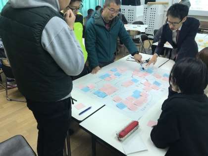 出た意見は付せんに書き、それを模造紙に張り付けて、分類していきました。