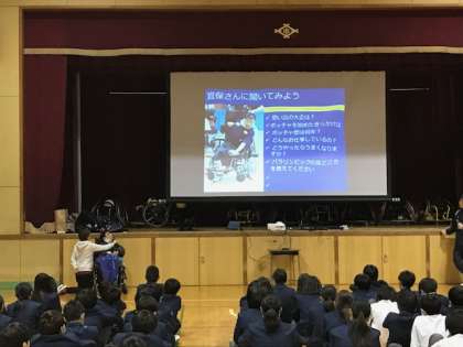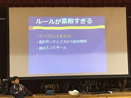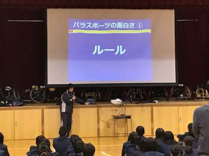 6限目は、大阪体育大学の先生や日本代表経験のある現役の選手からお話をしていただきました。パラスポーツの素敵なところ、特にルールが素敵であることや、ブラジルやアルゼンチンのボッチャの選手は足でプレーをするのが得意である等のお話をしていただきました。