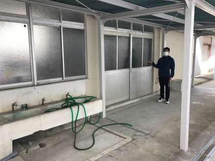 掃除の最後のごみほり当番はここまで来てもらいます。
