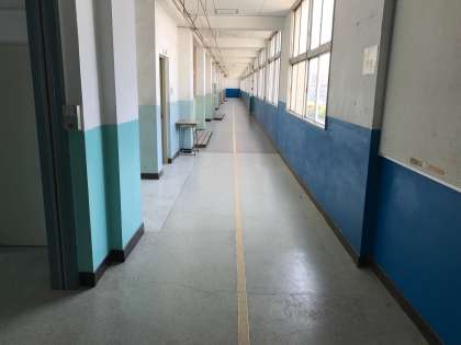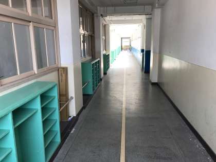 「コ」の字の2つ目の角を曲がると特別校舎棟です。