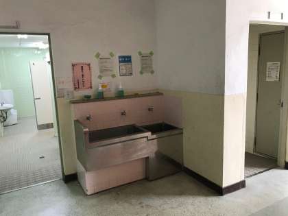 第2職員室のところを右に曲がるとトイレがあり、その向こうに2年生の教室と学習室が並んでいます。