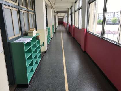 先ほどの印刷室や第2職員室の前の廊下は窓が非常に小さく、昼でも薄暗いのですが、教室の方は日当たり抜群です。