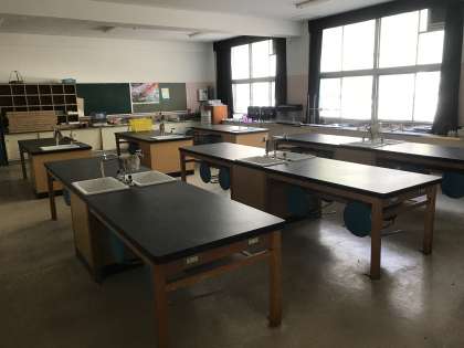 配膳室の隣は教科書や課題配布の場所でお馴染みの理科室です。